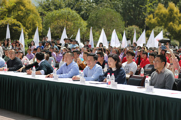 高華錦代表學(xué)校對(duì)本屆大學(xué)生社團(tuán)文化節(jié)開(kāi)幕表示熱烈祝賀,對(duì)積極參加社團(tuán)節(jié)各項(xiàng)活動(dòng)的廣大師生及各部門工作人員表示誠(chéng)摯的感謝。她談到,學(xué)生社團(tuán)是學(xué)生培養(yǎng)興趣、發(fā)展個(gè)性的重要載體,是學(xué)校“全人教育”理念的重要內(nèi)容,也是大學(xué)生文化傳承與創(chuàng)新的實(shí)踐平臺(tái)。一年一度的社團(tuán)文化節(jié)既是對(duì)我校社團(tuán)建設(shè)成果的一次集中檢驗(yàn)和展示,也是廣大文理學(xué)子才藝展示的舞臺(tái)。她希望社團(tuán)建設(shè)繼續(xù)堅(jiān)持實(shí)施“五化”工作目標(biāo),進(jìn)一步提升社團(tuán)組織的育人功能,進(jìn)一步加強(qiáng)對(duì)學(xué)生社團(tuán)的分類指導(dǎo)。最后,她宣布第十五屆大學(xué)生社團(tuán)文化節(jié)開(kāi)幕。