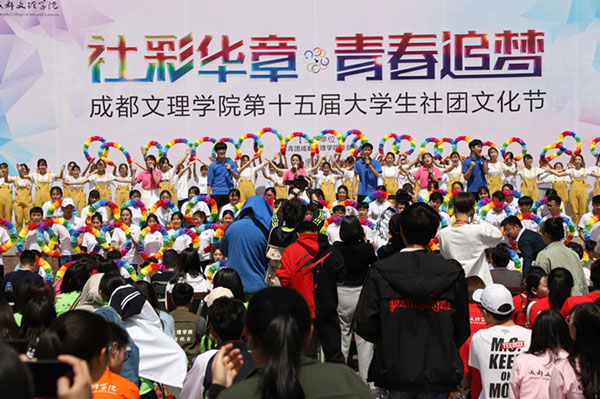 開(kāi)幕式上,文理校友帶來(lái)的《萌寵大作戰(zhàn)》為活動(dòng)增添樂(lè)趣,TATA民謠社、櫻花日語(yǔ)社、零度音樂(lè)社帶來(lái)的《飛young青春》將現(xiàn)場(chǎng)的氛圍引向高潮,中國(guó)特色社會(huì)主義理論體系學(xué)習(xí)協(xié)會(huì)及各社團(tuán)代表表演的《我們都是追夢(mèng)人》表達(dá)出文理筑夢(mèng)人的奮斗青春,展現(xiàn)出文理學(xué)子青春向上的精神風(fēng)貌。
