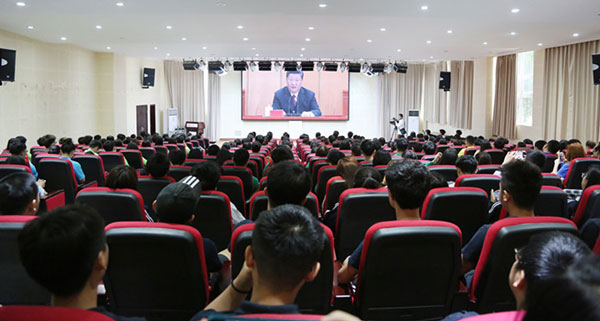 4月30日上午,紀念五四運動100周年大會在人民大會堂舉行。中共中央總書記、國家主席、中央軍委主席習近平出席大會并發(fā)表重要講話。我校各單位積極組織師生員工通過電視、網絡等方式集中收聽收看會議直播實況。
