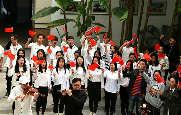 年輕的學(xué)子們把心中對祖國的熱愛與祝福都化作了同一首歌。人文學(xué)院學(xué)生馬旺對記者說,“當(dāng)歌聲響起的時候,大家所有的熱情都是因?yàn)橛形覀冞@個祖國。愛國的話我們都聽過很多,作為新時代的青年,我們應(yīng)該對此有自己的解讀,就是有所追求,同時有所堅(jiān)守?!?