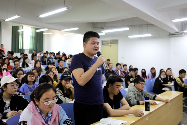 郭書印從研究分析高等教育規(guī)律入手,結合世界發(fā)達國家回歸本科教育的主流趨勢,重點講述世界高校高等教育改革的具體案例,讓同學們了解“回歸本科教育”是世界高等教育發(fā)展的共識和趨勢。進而從國家政策層面為同學們解讀我國高等教育改革發(fā)展的奮進之筆、具體舉措。引導同學們作為本科教育的主體,在接受教育階段,要回歸常識,潛心求學,面向實際、深入實踐,以知促行、以行求知;引導同學們求真學問、練真本領,努力成為有理想、有學問、有才干的實干家。