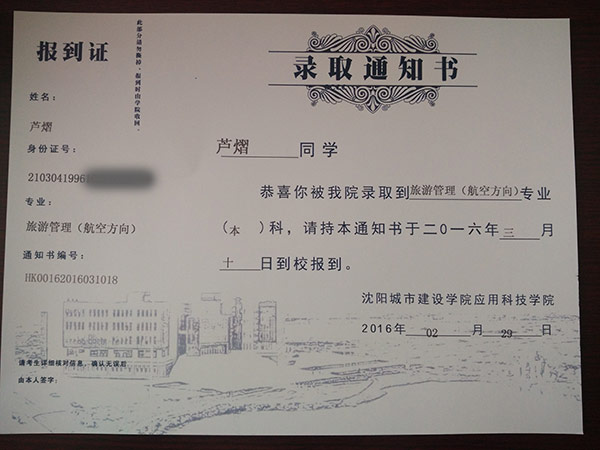 恭喜蘆熠同學(xué)被我校錄取【沈城建航空】