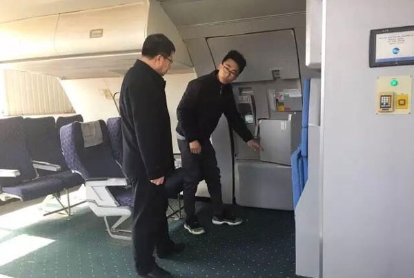 工程師齊新松詳細(xì)講解航空模擬艙設(shè)備的訓(xùn)練方式和方法,并操作演示,冷志強(qiáng)院長(zhǎng)認(rèn)真聆聽(tīng)并反復(fù)咨詢操作時(shí)的注意事項(xiàng)。