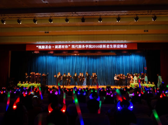 青春筑夢織華章,雨潤棟梁遍五湖。2016年12月23日17時在圖書館報告廳,現(xiàn)代服務(wù)學(xué)院2016年新老生聯(lián)誼會在師生的熱切期盼中如約而至,學(xué)院2016級全體新生和部分老生代表參加了本場晚會。校學(xué)生處處長周振剛、學(xué)生工作部綜合管理科科長劉春媚、團(tuán)委辦公室劉宇老師、現(xiàn)代服務(wù)學(xué)院院長張明明、教學(xué)總管肖偉民、物流教研室主任何巖松、學(xué)工辦主任楊琴及全體輔導(dǎo)員老師共同觀看了本場晚會。