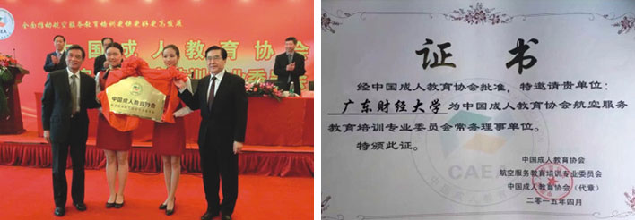為貫徹《國務院關于加快發(fā)展現代職業(yè)教育的決定》、《國務院辦公廳關于深化產教融合的若干意見》、《職業(yè)學校校企合作促進辦法》、《職業(yè)教育與繼續(xù)教育工作要點》等文件精神,大力推動職業(yè)教育快速健康持續(xù)發(fā)展,滿足航空業(yè)快速發(fā)展對人才的需求。廣東財經大學繼續(xù)教育學院與北京中航未來科技集團有限公司攜手開展航空服務職業(yè)教育校企合作,通過主動適應國內外民航業(yè)的快速發(fā)展和相關人才的全面發(fā)展需求,結合學校辦學優(yōu)勢和企業(yè)先進的人才培養(yǎng)模式,強調培養(yǎng)體系的針對性和實效性,采用“職業(yè)技能培養(yǎng)+實訓實習”相結合的培養(yǎng)模式,實行“2+1”教學模式,即前兩年在廣東財經大學繼續(xù)教育學院學習專業(yè)理論課程;最后一年到中航未來航空實訓基地進行實訓,以學員就業(yè)為導向、技能培養(yǎng)為主導,致力于培養(yǎng)文化素質和語言能力更強、專業(yè)技能更高的現代民航服務人才。