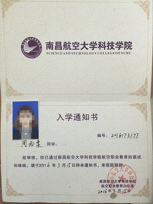 恭喜周雨柔同學(xué)被我校錄取【南航航空】