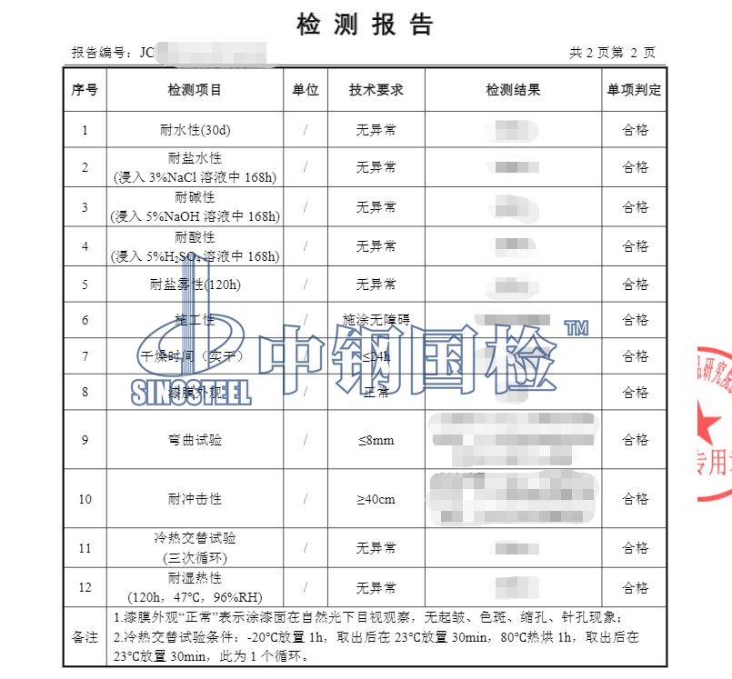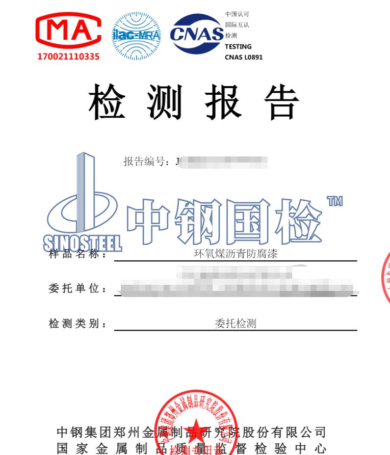 目前已經(jīng)進(jìn)行檢測(cè)服務(wù)40多年,有著非常豐富的檢測(cè)經(jīng)驗(yàn),下面是某單位委托中鋼國檢做的環(huán)氧煤瀝青防腐漆檢測(cè),詳細(xì)內(nèi)容如下:
