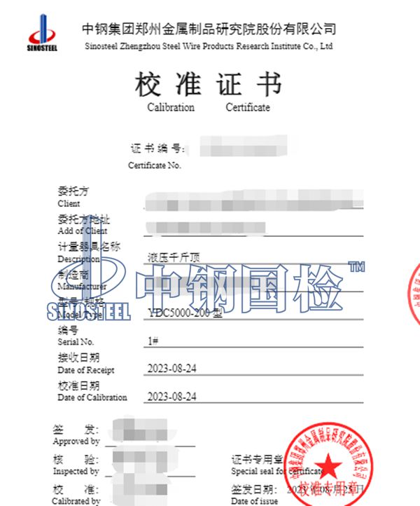 中鋼國(guó)檢擁有符合標(biāo)準(zhǔn)要求的專(zhuān)業(yè)實(shí)驗(yàn)室,可以保證檢測(cè)數(shù)據(jù)的準(zhǔn)確性。中鋼國(guó)檢的服務(wù)群體已經(jīng)覆蓋全國(guó),目前有十多家分公司和34個(gè)辦事處在全國(guó)各地分布,能做的及時(shí)響應(yīng),及時(shí)出具報(bào)告,并具有CMA/CNAS檢測(cè)資質(zhì),檢測(cè)報(bào)告全國(guó)認(rèn)可。下面是某單位委托中鋼國(guó)檢做的千斤頂校準(zhǔn),詳細(xì)內(nèi)容如下: