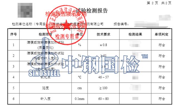 中鋼國檢擁有符合標(biāo)準(zhǔn)要求的專業(yè)實(shí)驗(yàn)室,可以保證檢測數(shù)據(jù)的準(zhǔn)確性。中鋼國檢的服務(wù)群體已經(jīng)覆蓋全國,目前有十多家分公司和34個(gè)辦事處在全國各地分布,能做的及時(shí)響應(yīng),及時(shí)出具報(bào)告,并具有CMA/CNAS檢測資質(zhì),檢測報(bào)告全國認(rèn)可。下面是某單位委托中鋼國檢做的瀝青檢測,詳細(xì)內(nèi)容如下: