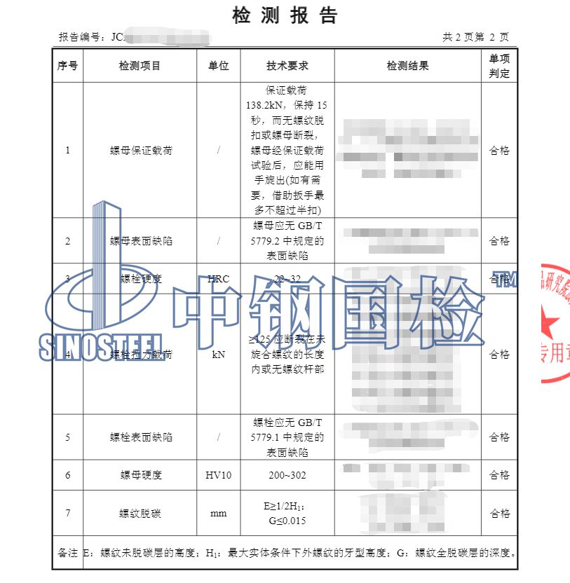 中鋼國檢作為專業(yè)的檢測機(jī)構(gòu),是質(zhì)檢總局首批批準(zhǔn)成立的第三方公正性技術(shù)檢驗(yàn)機(jī)構(gòu),目前已經(jīng)進(jìn)行檢測服務(wù)40多年,有著非常豐富的檢測經(jīng)驗(yàn),下面是某單位委托中鋼國檢做的高強(qiáng)度螺栓檢測,詳細(xì)內(nèi)容如下: