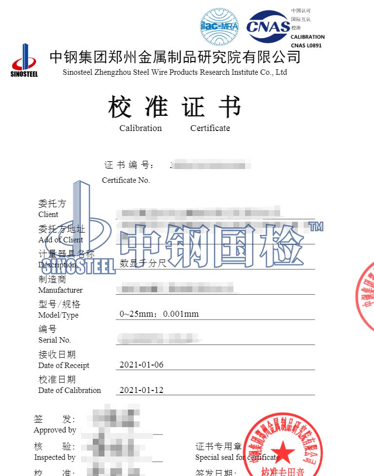 中鋼國檢擁有符合標(biāo)準(zhǔn)要求的專業(yè)實驗室,可以保證檢測數(shù)據(jù)的準(zhǔn)確性。中鋼國檢的服務(wù)群體已經(jīng)覆蓋全國,目前有十多家分公司和34個辦事處在全國各地分布,能做的及時響應(yīng),及時出具報告,并具有CMA/CNAS檢測資質(zhì),檢測報告全國認(rèn)可。目前已經(jīng)進(jìn)行檢測服務(wù)40多年,有著非常豐富的檢測經(jīng)驗,下面是某單位委托中鋼國檢做的數(shù)顯千分尺校準(zhǔn),詳細(xì)內(nèi)容如下: