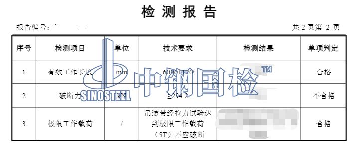 中鋼國(guó)檢擁有符合標(biāo)準(zhǔn)要求的專業(yè)實(shí)驗(yàn)室,可以保證檢測(cè)數(shù)據(jù)的準(zhǔn)確性。中鋼國(guó)檢的服務(wù)群體已經(jīng)覆蓋全國(guó),目前有十多家分公司和34個(gè)辦事處在全國(guó)各地分布,能做的及時(shí)響應(yīng),及時(shí)出具報(bào)告,并具有CMA/CNAS檢測(cè)資質(zhì),檢測(cè)報(bào)告全國(guó)認(rèn)可。下面是某單位委托中鋼國(guó)檢做的吊帶檢測(cè),詳細(xì)內(nèi)容如下: